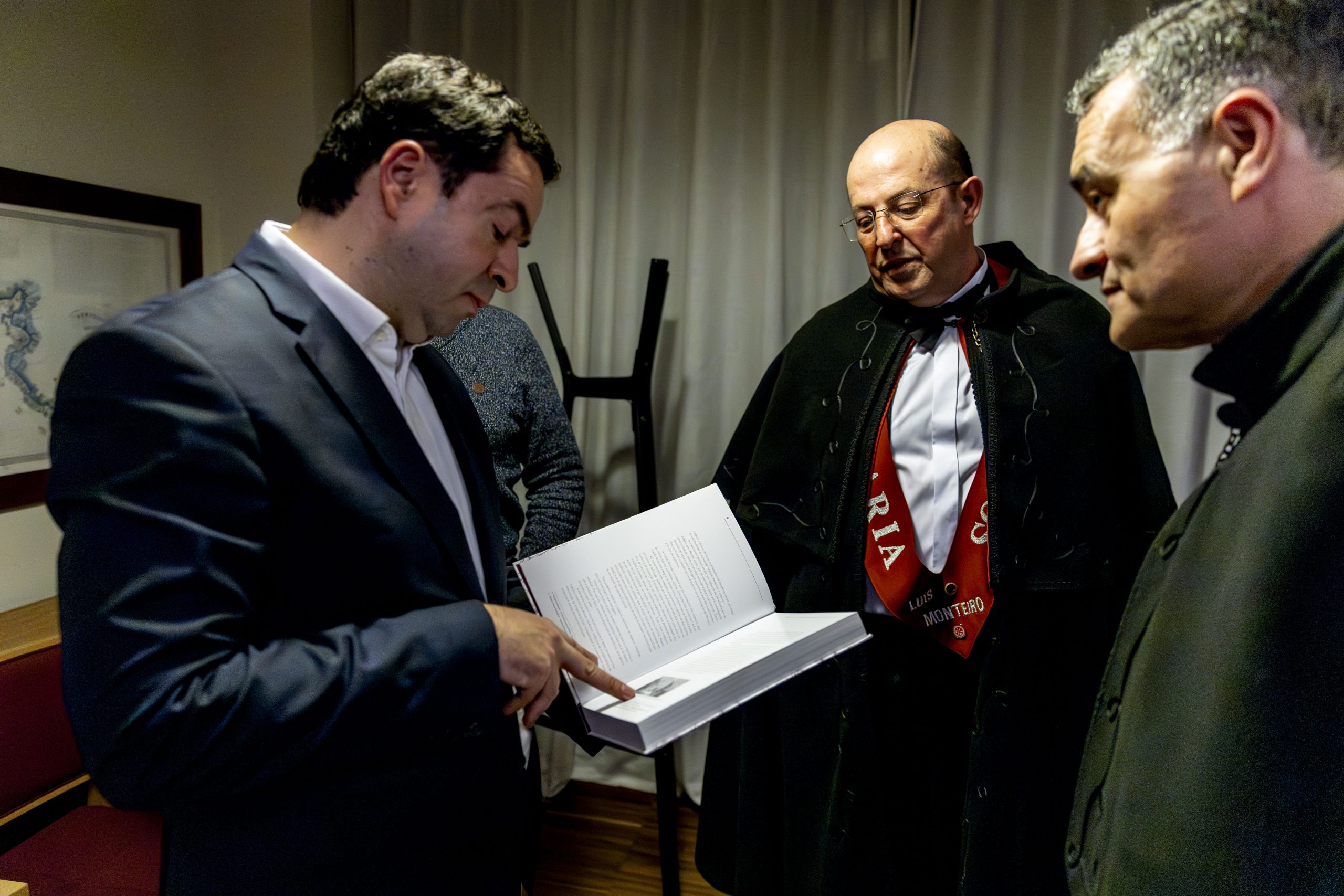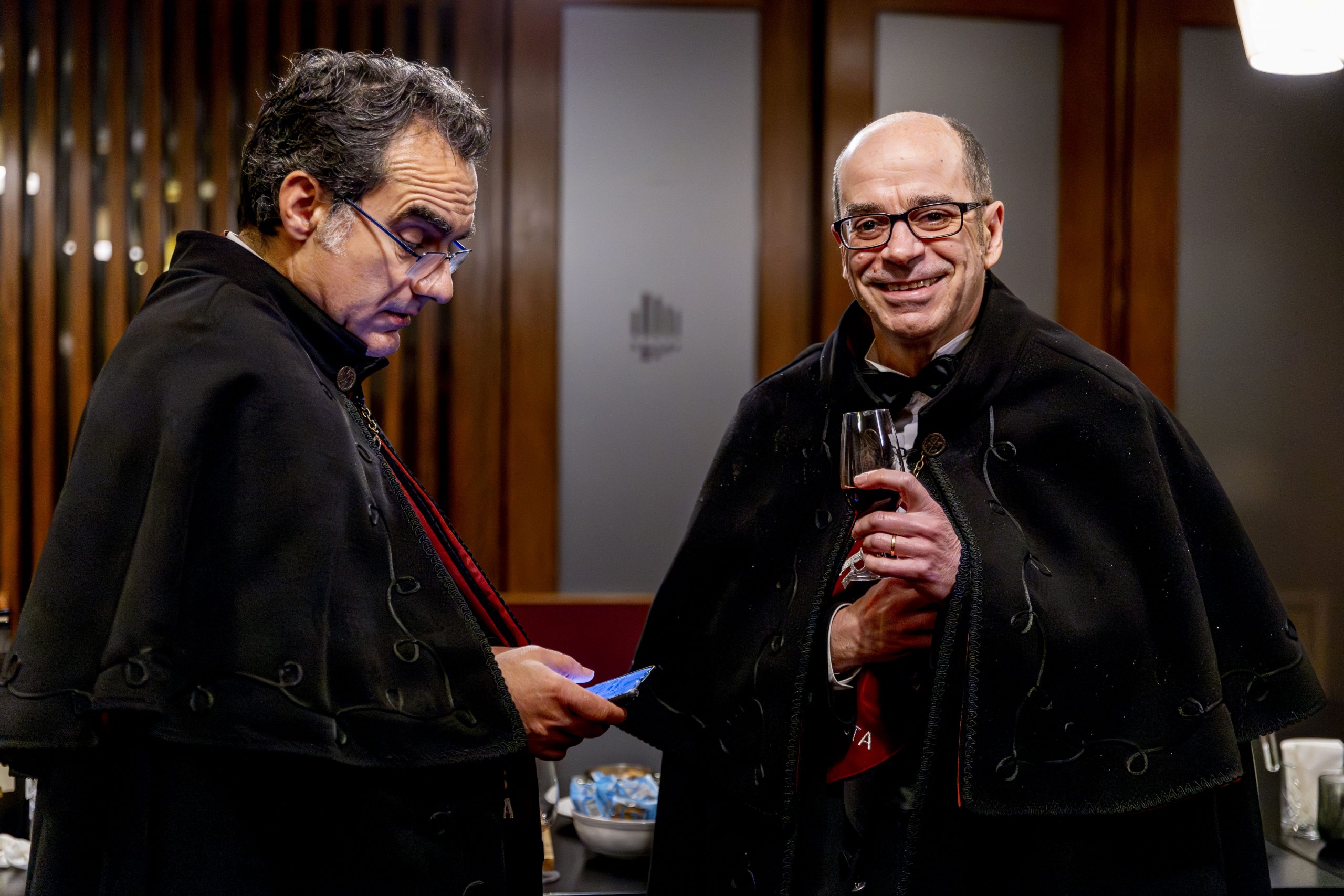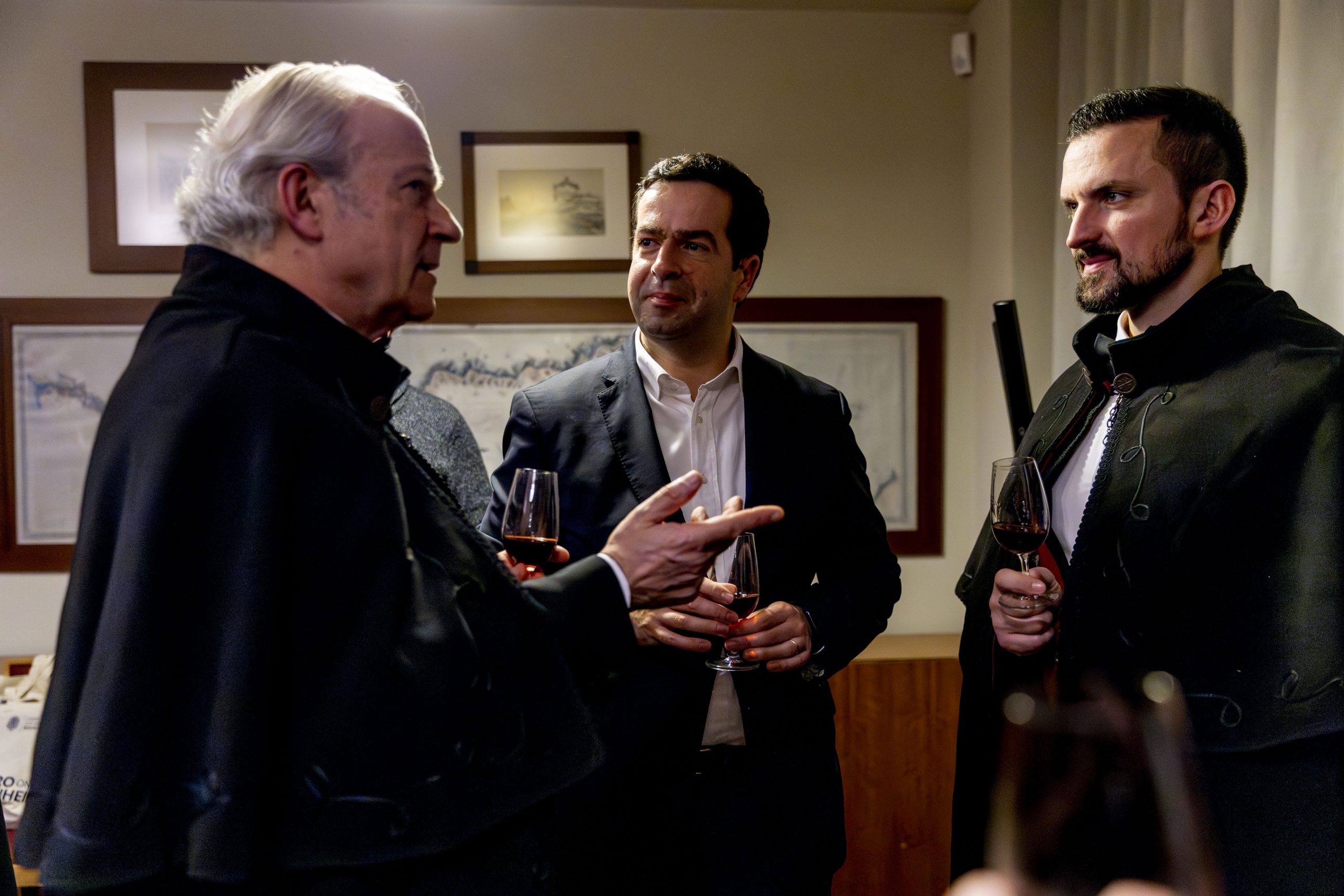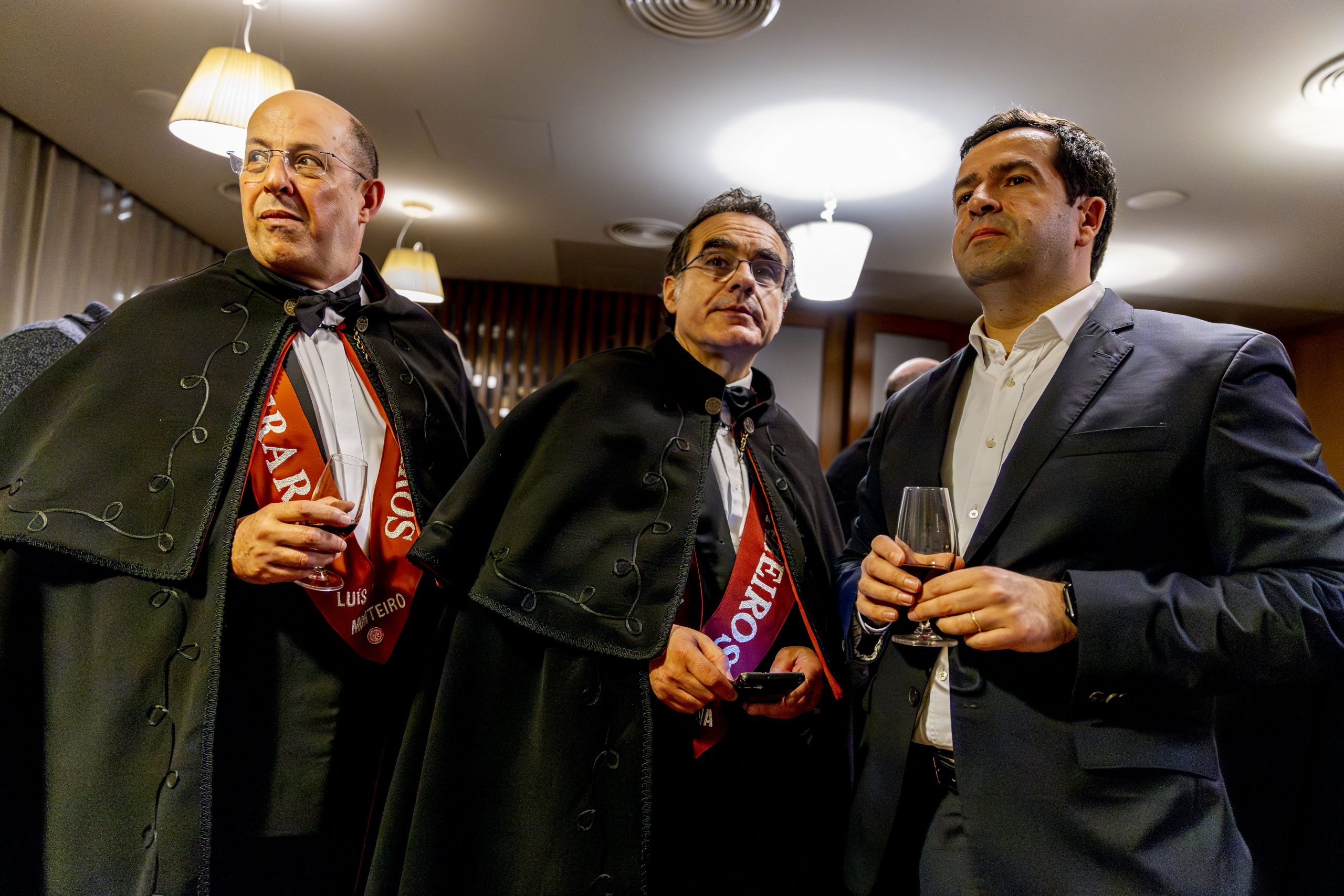 Durante a visita à OERN, os membros da Confraria envergaram os tradicionais smokings e as solenes faixas cor de tijolo, bordadas à mão, símbolo distintivo da irmandade.