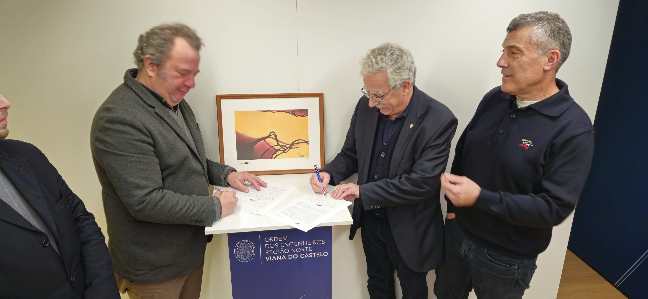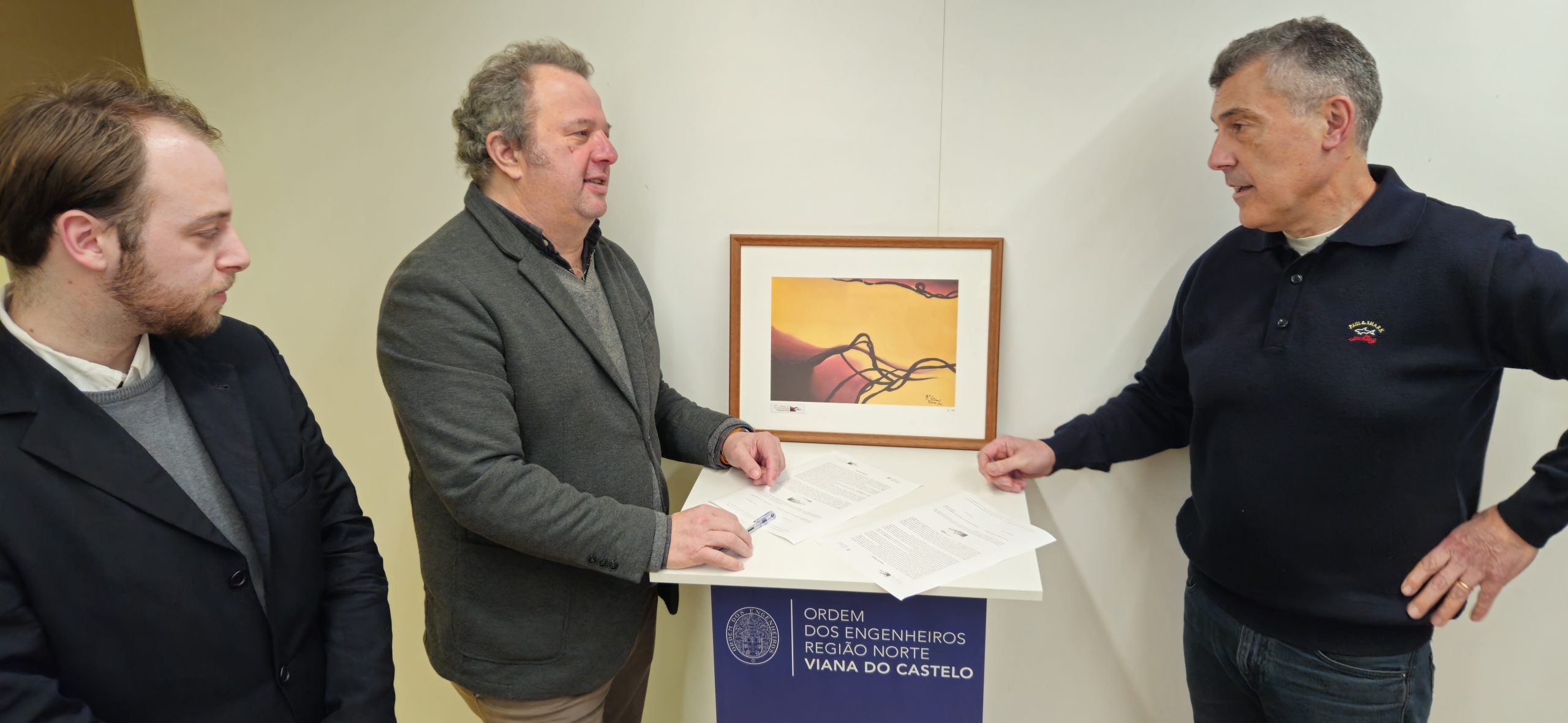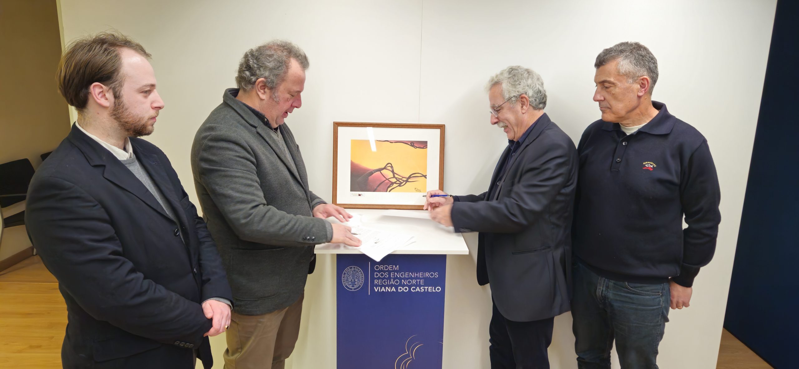 A Associação Maria de Fátima Moura – Promoção e Desenvolvimento Cultural, representada pelo Presidente da Direção e Membro da OERN, Luís Moura Serra, fez a doação à Delegação de Viana do Castelo da Ordem dos Engenheiros da Região Norte, representada pelo Delegado Distrital, Vitor Manuel Lopes Correia, de uma litografia de uma pintura de Maria de Fátima de Oliveira Moura, que passará a integrar o acervo patrimonial da Delegação de Viana do Castelo da Ordem dos Engenheiros da Região Norte: a litografia número II/200, designada como “Traços Castanhos”, que integra várias exposições que homenageiam Maria de Fátima de Oliveira Moura.