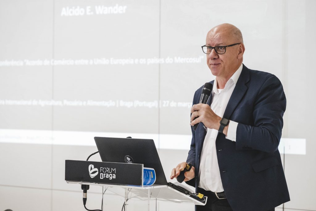 O painel de palestras evidenciou a diversidade de perspetivas sobre o acordo UE–Mercosul. Entre os oradores, o investigador da EMBRAPA, Alcido Wander, apresentou o acordo como uma iniciativa estratégica num contexto global marcado por instabilidade e preocupações com a segurança alimentar. Sublinhou a complementaridade entre os blocos, com o Mercosul a destacar-se na produção de alimentos e a UE em produtos de maior valor acrescentado. Referiu ainda os desafios associados às exigências ambientais e sanitárias, bem como a necessidade de garantir previsibilidade regulatória.