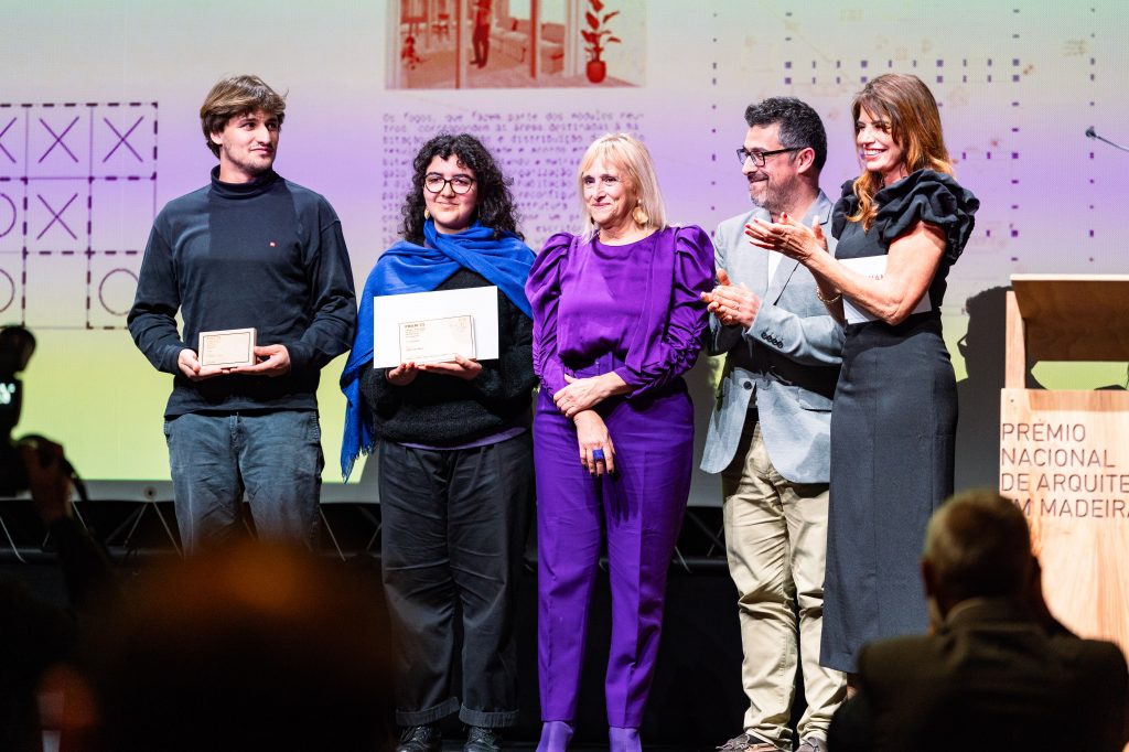 Foram também atribuídas três Menções Honrosas, reconhecendo abordagens inovadoras e sustentáveis à arquitetura em madeira.